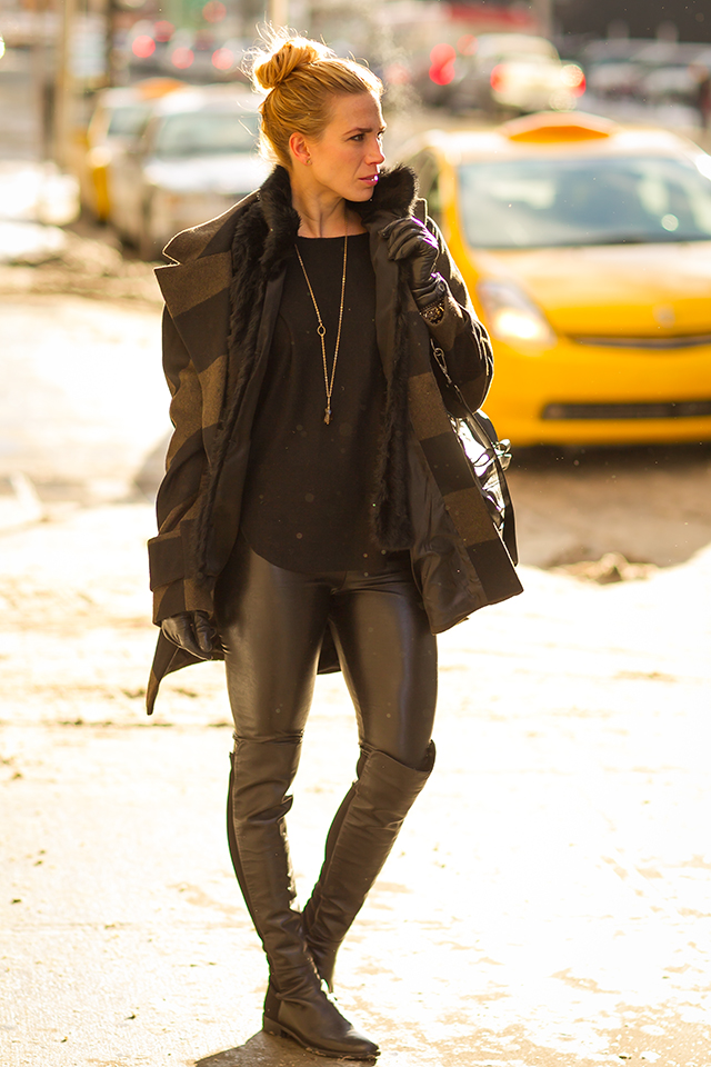 Vince Sweater, Wilfred Faux Leather Leggings, Michael Kors Fur Vest (similar here and here, here), ASOS Coat, Stuart Weitzman Boots, Proenza Schouler Handbag (similar here), Lisbeth Necklace
